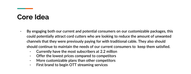 Tasked with creating a presentation that dives into the strategic framework of Sling TV.